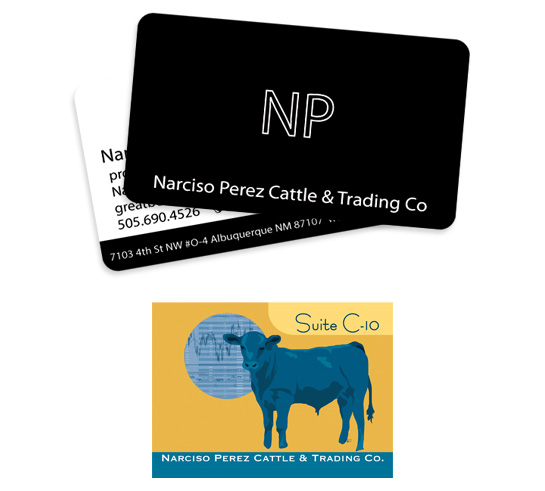 Narciso Perez Cattle & Trading Co. is a small cattle company specializing in raising natural beef. Job responsibilities included creating business cards and an office sign.