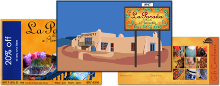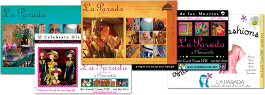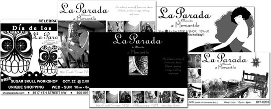 La Parada Mercantile is a mercantile offering an eclectic array of furniture, home décor, folk art, jewelry, and more. Job responsibilities included creating logo, business cards, advertisements, postcards, flyers, gift certificates, coupons. Please check out their website,