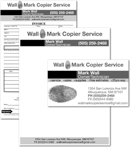 Wall Mark Copier Service sells and repairs copy equipment throughout New Mexico. Job responsibilities included creating a logo, business cards, letterhead, invoices, and advertisements.